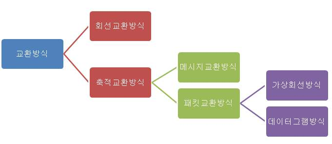 - 가상 회선 방식과 데이터그램 방식이 있음