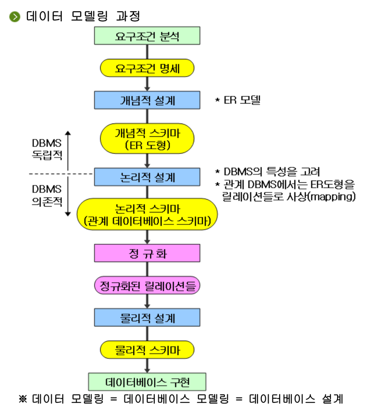 - DBMS에 독립적인 개념 스키마를 설계 요구분석 단계에서 나온 결과(명세)를 E-R 다이어그램과 같은 DBMS에 독립적이고 고차원적인 표현기법으로 기술하는 것