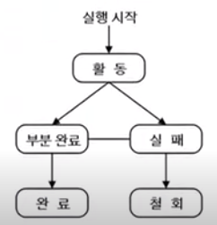 - 실패(failed) 트랜잭션 실행에 오류가 발행하여 중단된 상태