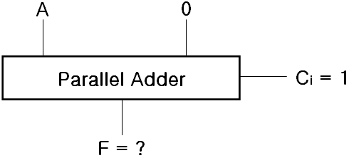 F: 0 1 1 0 (+6) - F = A + 1 이므로 병렬 가산기가 A값에 Ci값 1을 더함