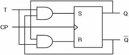 - JK FF의 두 입력선을 묶어서 한 개의 입력선으로 구성한 플립플롭