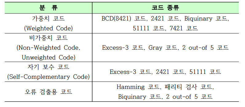 - 대표적 가중치 코드(Weight Code)