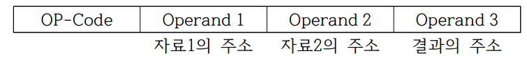 - 연산자 부(Op-Code, Operation Code 부) = 실행할 명령이 들어 있음, 연산자 부의 비트수가 n Bit 일 때 2의 n승 개의 명령어(연산자) 수행 가능