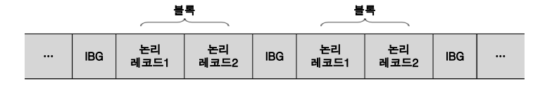 • IRG(Inter Record Gap) = 논리 레코드 사이의 경계