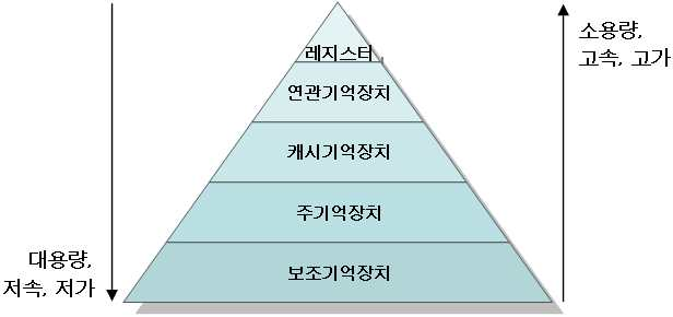 • CPU가 직접 접근하여 처리할 수 있는 기억장치, 현재 수행되는 프로그램과 데이터를 저장